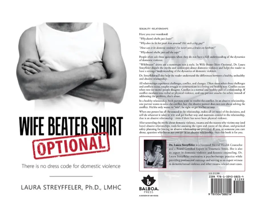 “Wife Beater Shirt Optional” by Dr. Laura Streyffeler dispels common myths about domestic violence and helps readers understand the dynamics of abusive relationships. It clarifies the differences between healthy, unhealthy, and abusive relationships, and offers practical tools for assessing abuse and safety planning. Perfect for anyone questioning their own or a loved one’s relationship.